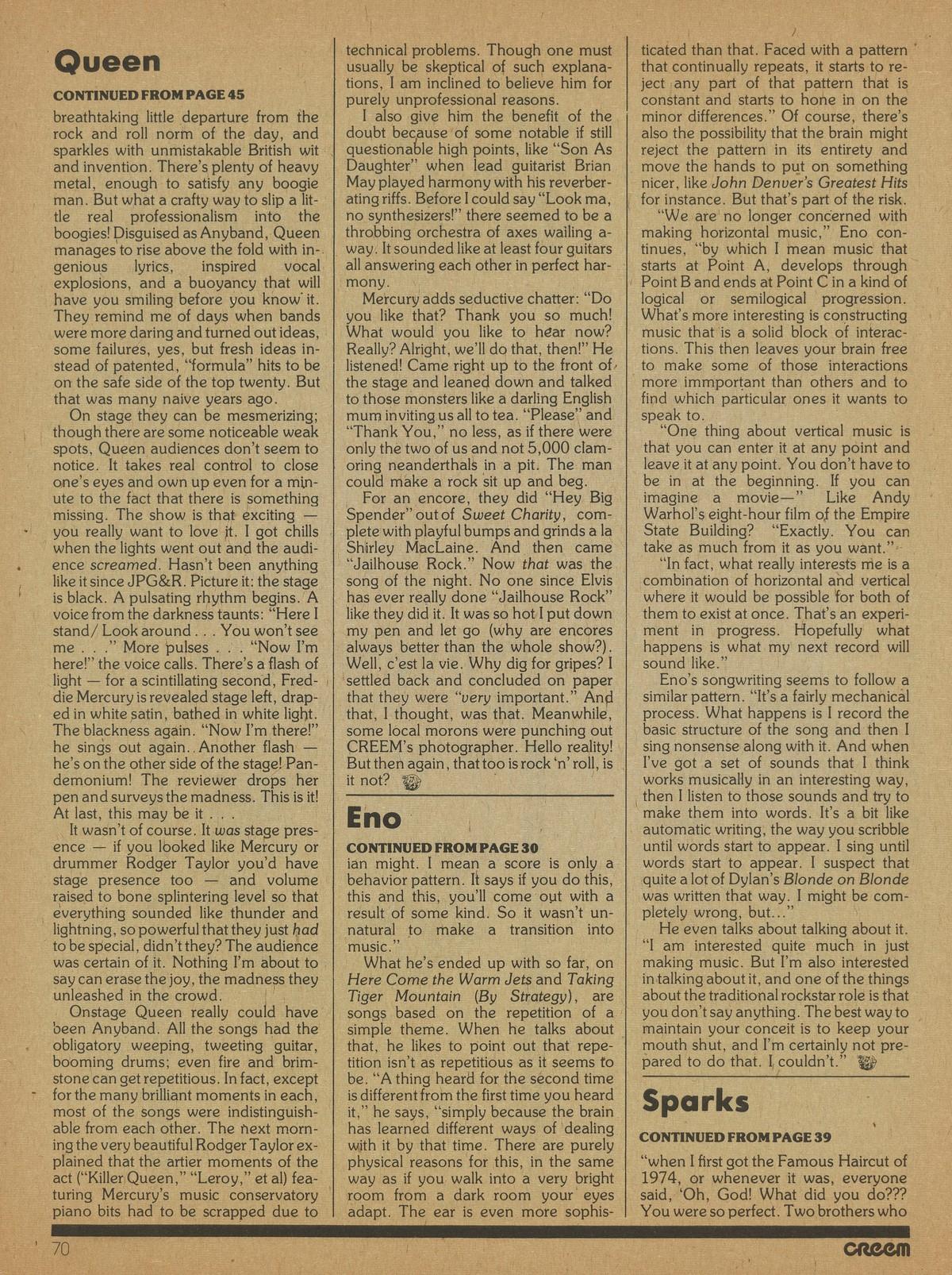 Brian Peter George Eno (Eno is his last name), the scaramouche of the synthesizer—in Europe they may call him an artiste, but here in roughneck America anyone who looks like this is just another one of them glit twits. Can such a blanket characterization hold true?