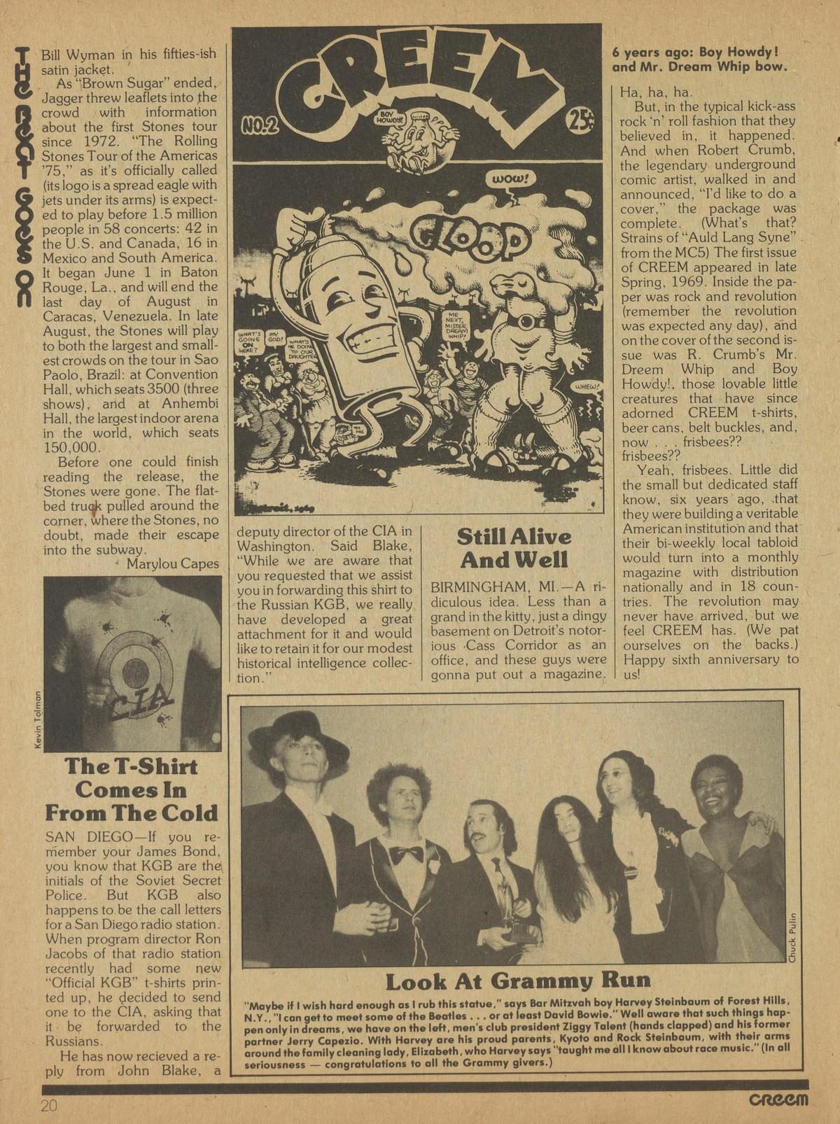 NEW YORK-Two hundred of New York’s finest fourth estaters, from Screw to the New York Times to CREEM gathered in Feathers Restaurant in the fashionable Fifth Avenue Hotel awaiting word from the Rolling Stones about their summer tour. After 45 minutes of lunchnibbling and cocktailing, the press corps was ushered to a conference room, which had five empty chairs and five silent microphones.