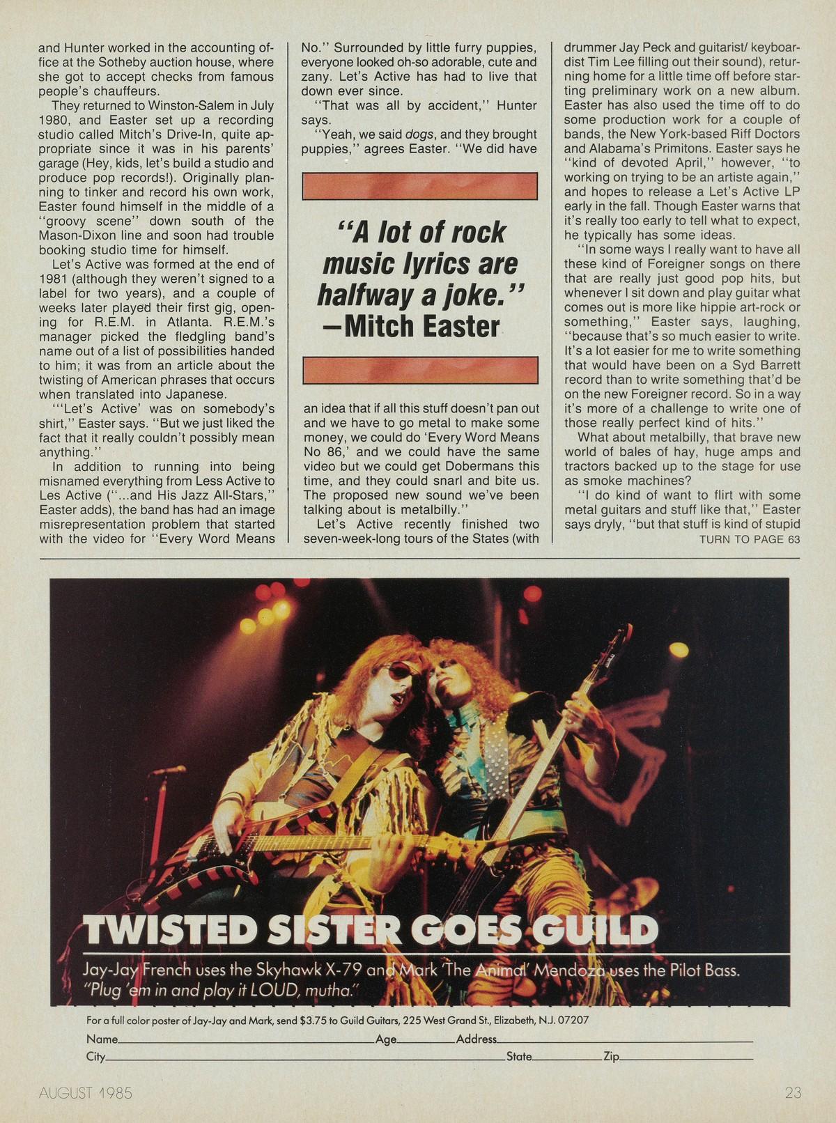 North Carolina has one of the neater state mottos around: Esse Quam Videri, To Be Rather Than To Seem. You might apply that motto to one of the Tar Heel State’s brightest musical combos, Let’s Active, whose principals are songwriter/ singer/guitarist/producer Mitch Easter and bassist/singer Faye Hunter.