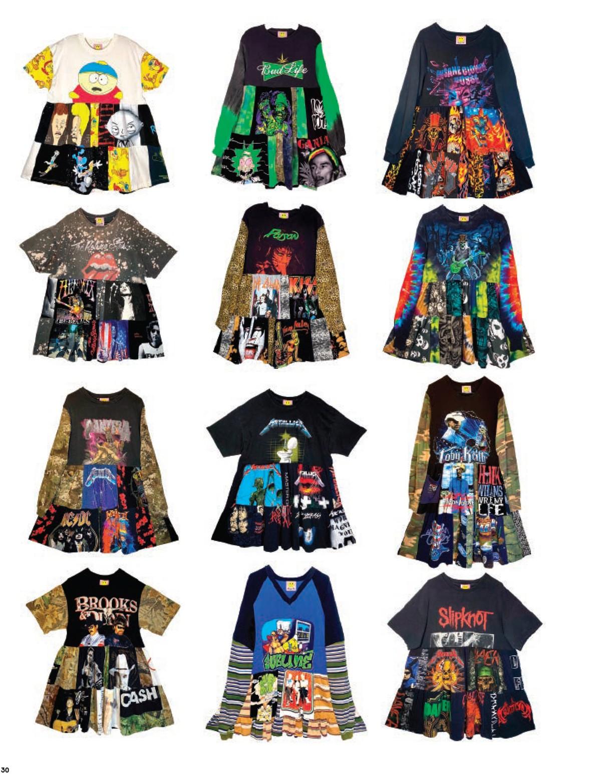 When touring became impossible in 2020 over you-knowwhat, Death Valley Girls drummer Laura Kelsey took her rock ’n’ roll bona tides back to the garage—but this time she was working on frills, not fills. “I’ve always loved and collected T-shirts, and I wear a baggy tee most days,” says Kelsey, “so I wanted to take that idea and create something that was easy to throw on but was also a full outfit in itself.” And thus was born LiFER, a line of custom dresses constructed out of vintage tees at her L.A. home. Kelsey’s dressmaking venture soon led to her parting ways with Death Valley Girls in order to outfit scores of stylish, happy customers, including such onstage luminaries as Phoebe Bridgers, Baby Queen, and even her former bandmate, DVG singer Bonnie Bloomgarden. Though she misses getting behind the kit, Kelsey isn’t complaining: “It’s great because even though I’m not out playing live music anymore, I still get to be a part of that world.” Here’s a peek at her process.