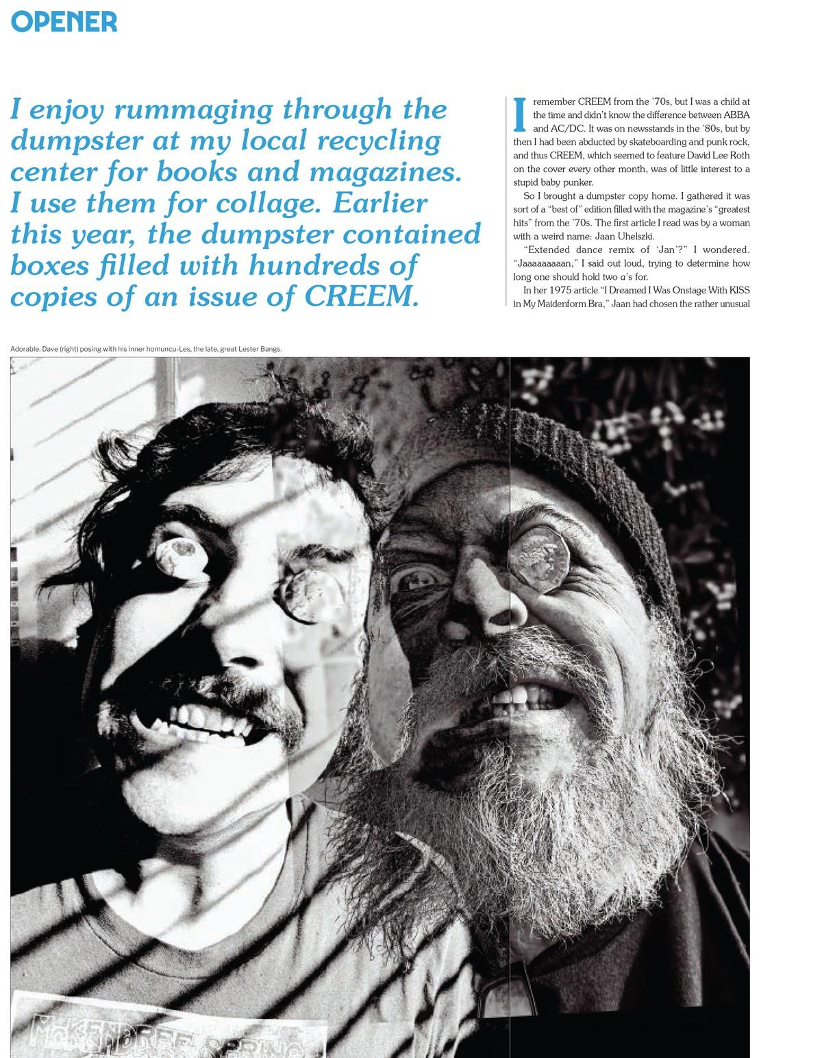 I remember CREEM from the '70s, but I was a child at the time and didn’t know the difference between ABBA and AC/DC. It was on newsstands in the '80s, but by then I had been abducted by skateboarding and punk rock, and thus CREEM, which seemed to feature David Lee Roth on the cover every other month, was of little interest to a stupid baby punker.