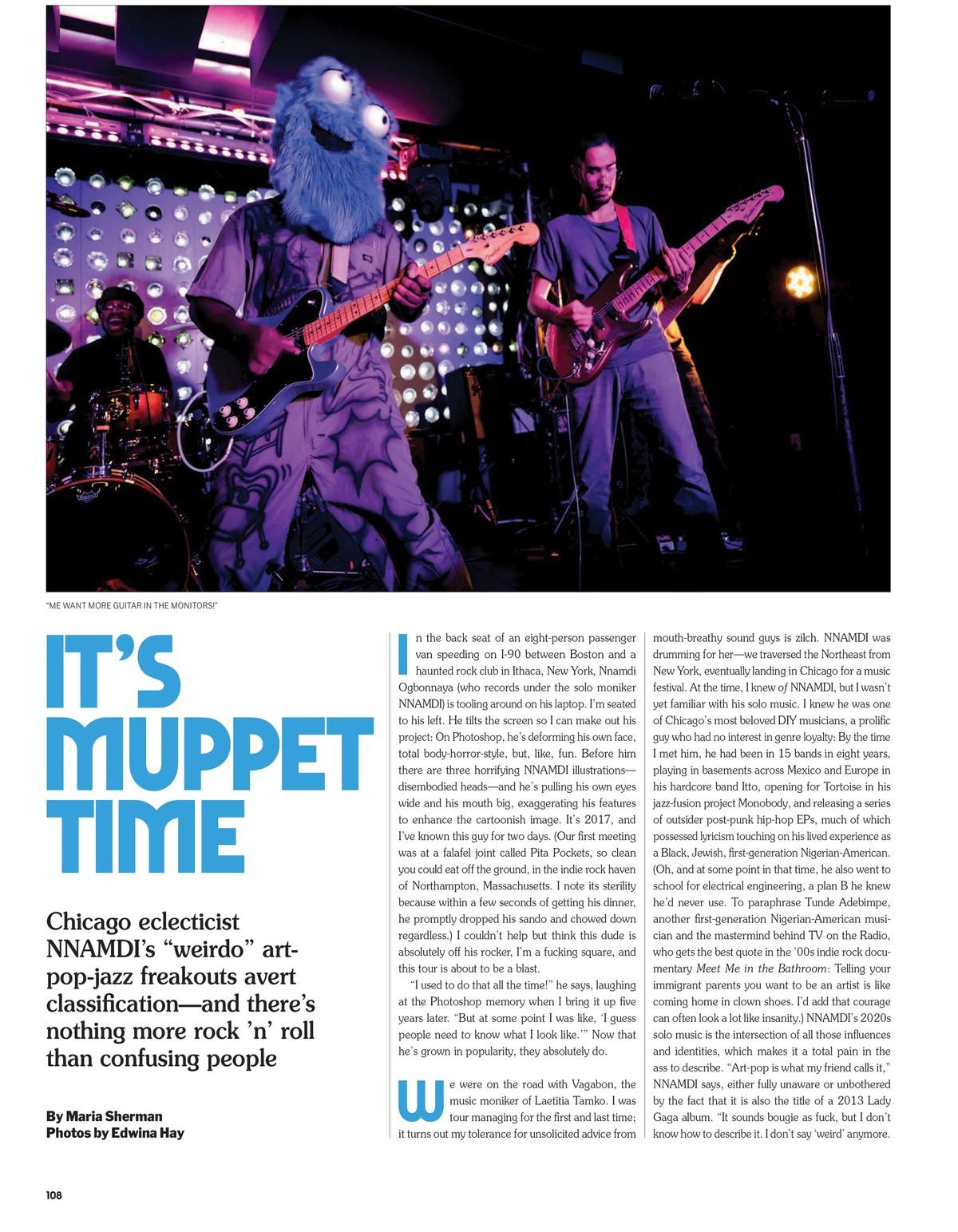 Chicago eclecticist NNAMDI’s “weirdo” artpop-jazz freakouts avert classification—and there’s nothing more rock ’n’ roll than confusing people.