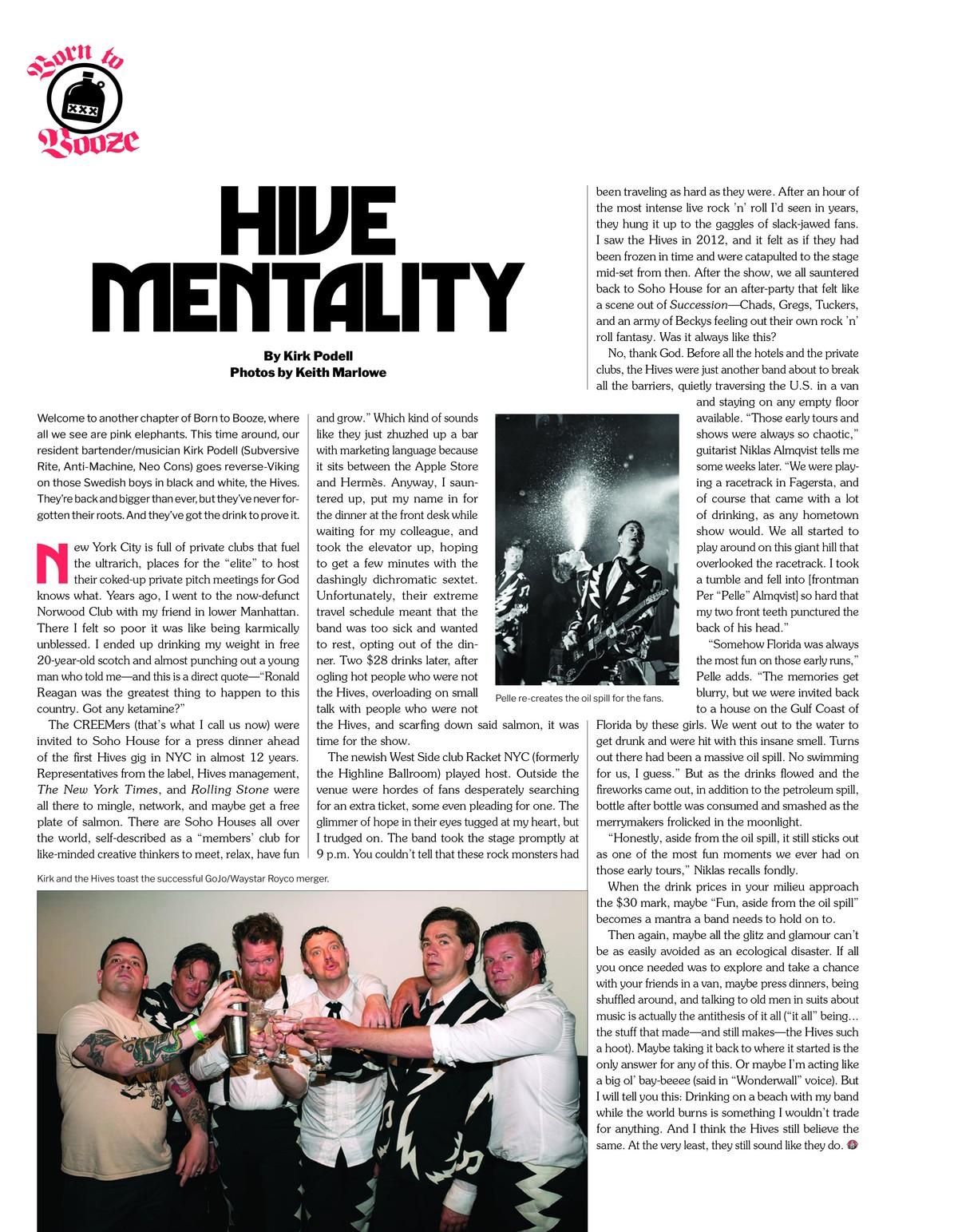 Welcome to another chapter of Born to Booze, where all we see are pink elephants. This time around, our resident bartender/musician Kirk Podell (Subversive Rite, Anti-Machine, Neo Cons) goes reverse-Viking on those Swedish boys in black and white, the Hives. They’re backand biggerthan ever, but they’ve never forgotten their roots. And they’ve got the drink to prove it.