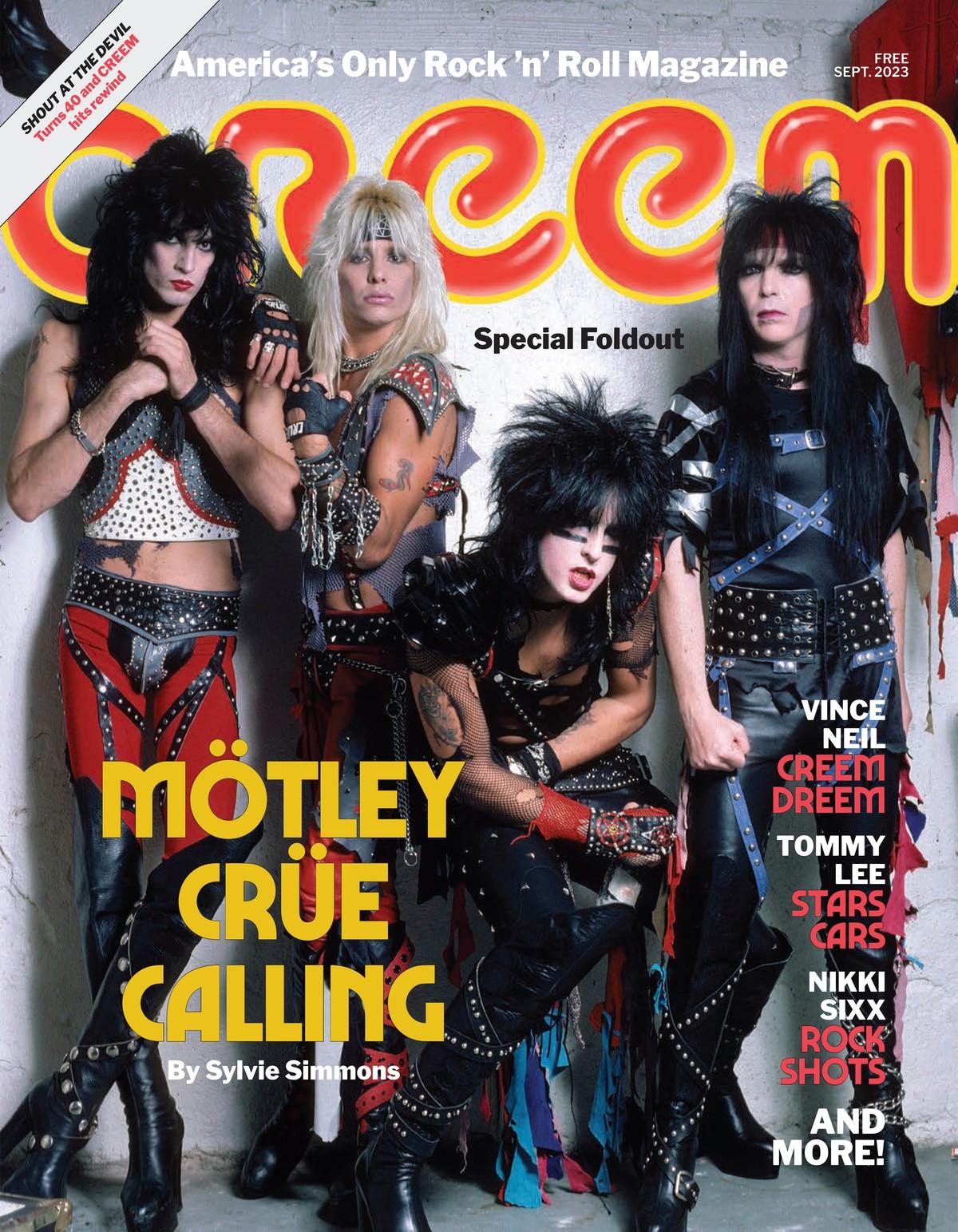 The perfect world...little waterfalls tinkle cheerfully down the hillside and rabbits and chipmunks scamper playfully in the long grass of the sun-dappled meadow; bluebirds tweet their happy tweeting high in the linden trees, and all the men look like Mötley Crüe!! Art-wrecko cherubs squeezed into dead black cow, looking like life-size ads for Frederick’s of Hollywood’s fetish department, their heels stilettoed, their wrists studded, their chests chained, their crotches armored, and, topping the lot like a maraschino cherry on a chocolate gateau, the most unacceptably glorious brightly dyed shag cuts this side of the early ’70s!