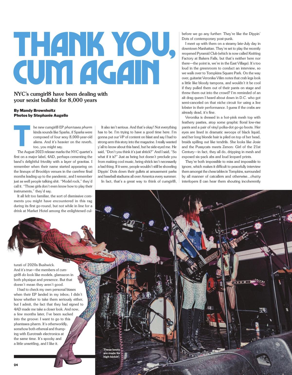 The August 2023 release marks the NYC quartet’s first on a major label, 4AD, perhaps cementing the band’s delightful frivolity with a layer of gravitas. I remember when their name started appearing on the lineups of Brooklyn venues in the carefree final months leading up to the pandemic, and I remember just as well people talking shit. “Model rock,” they’d call it. “Those girls don’t even know how to play their instruments,” they’d say.