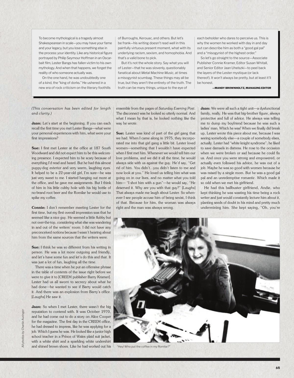 A veritable henhouse of former CREEM staffers gets the last word on Lester’s legacy with the ladies.