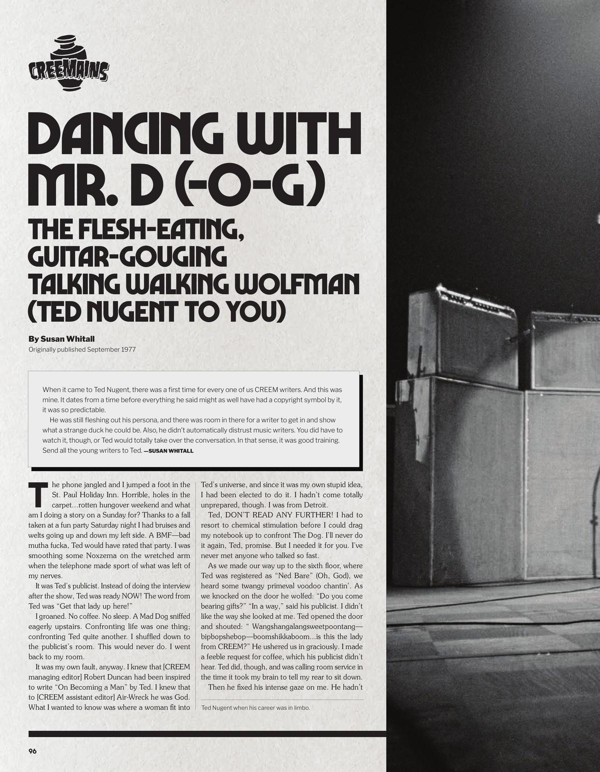 When it came to Ted Nugent, there was a first time for every one of us CREEM writers. And this was mine. It dates from a time before everything he said might as well have had a copyright symbol by it, it was so predictable.
