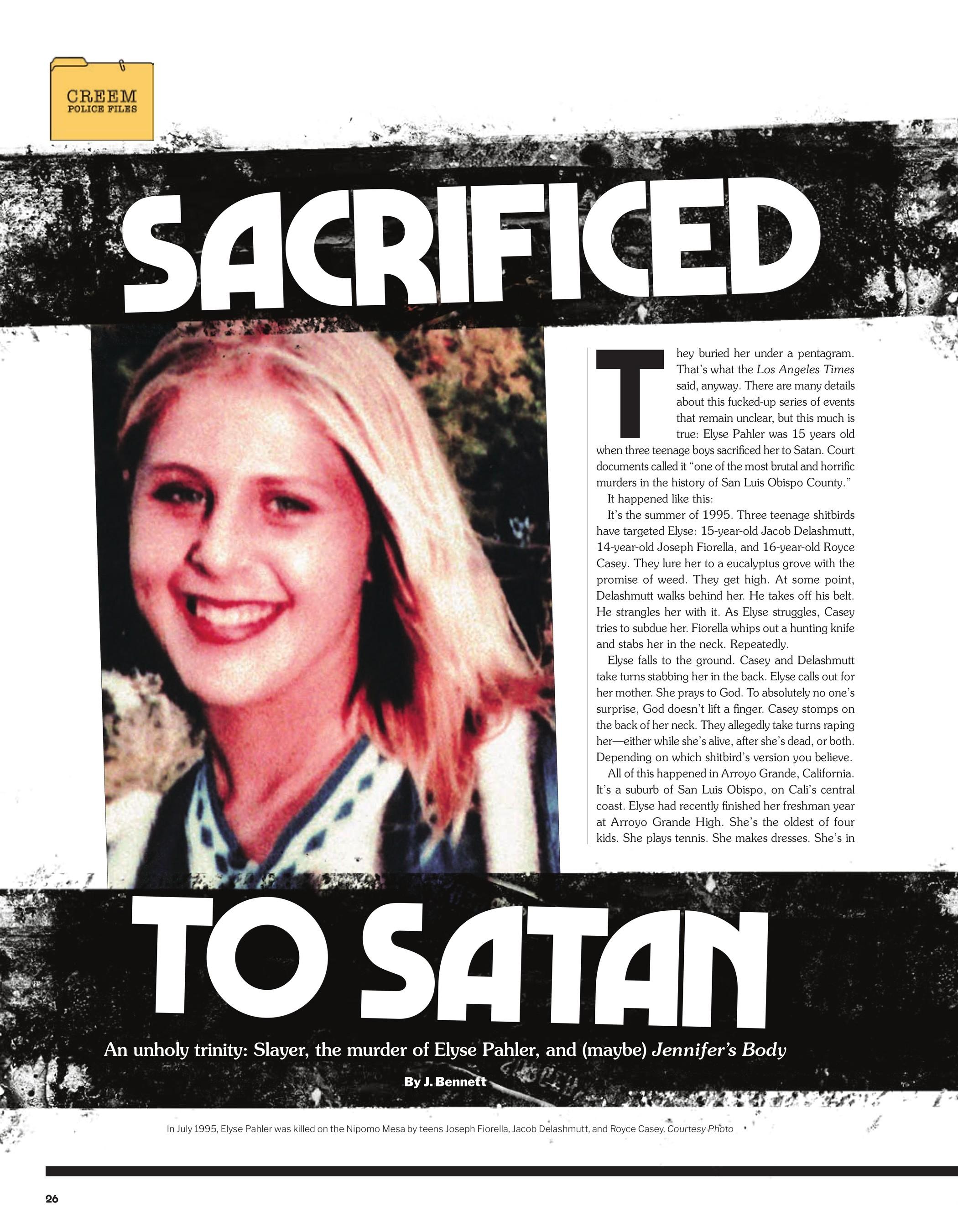 They buried her under a pentagram. That’s what the Los Angeles Times said, anyway. There are many details about this fucked-up series of events that remain unclear, but this much is true: Elyse Pahler was 15 years old when three teenage boys sacrificed her to Satan. Court documents called it “one of the most brutal and horrific murders in the history of San Luis Obispo County.”