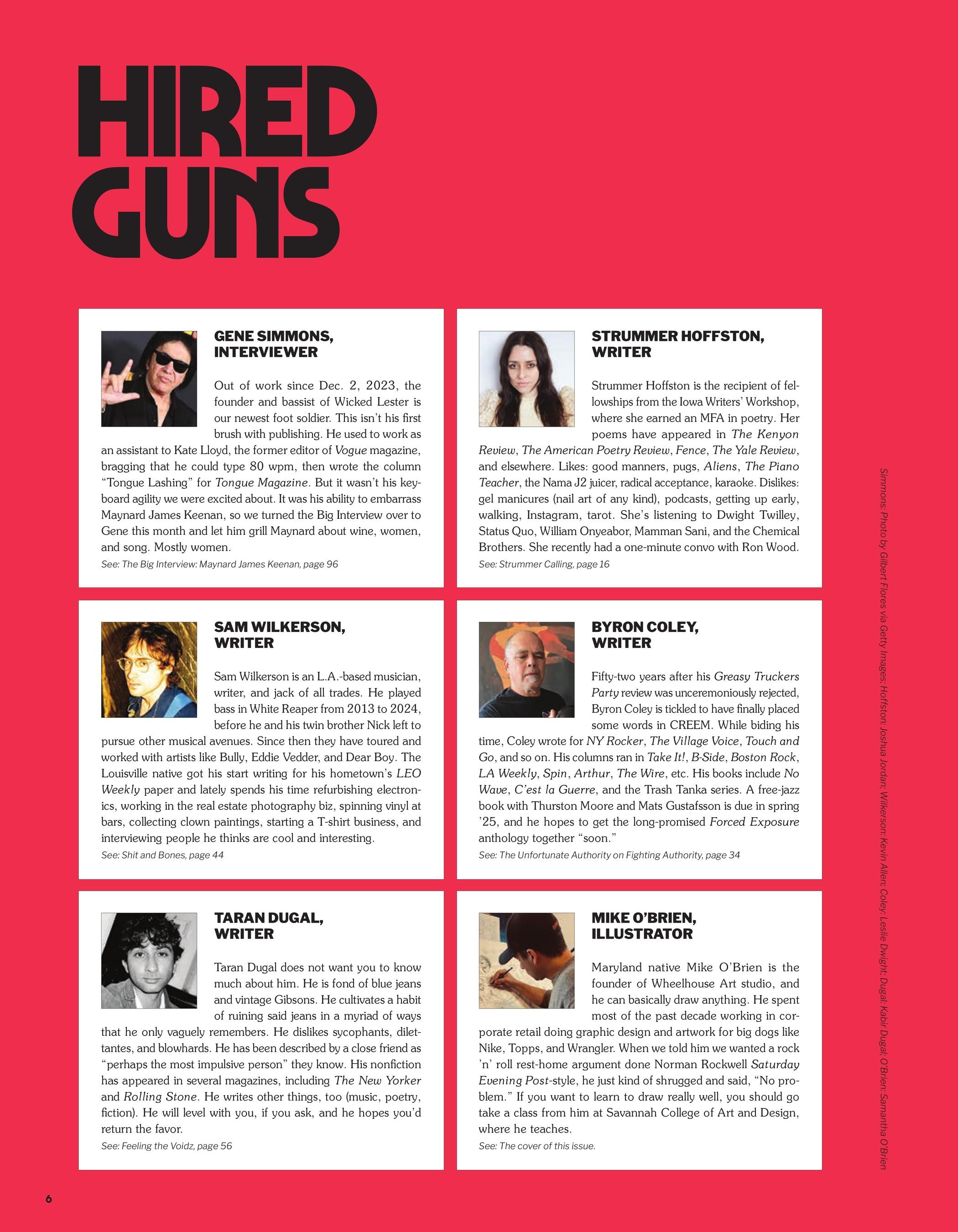 Gene Simmons, Sam Wilkerson, Taran Dugal, Strummer Hoffston, Byron Coley, Mike O'Brien