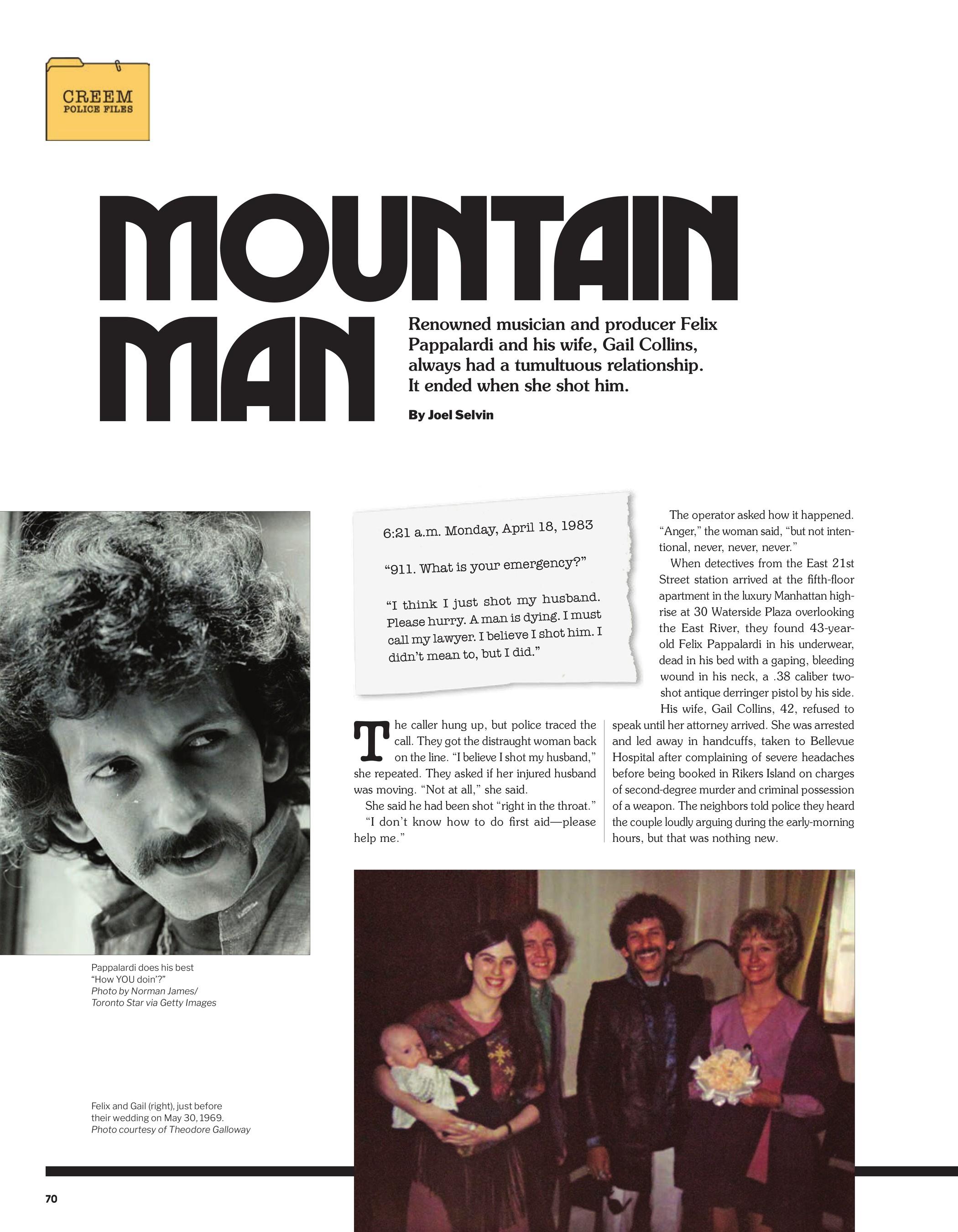 Renowned musician and producer Felix Pappalardi and his wife, Gail Collins, always had a tumultuous relationship. It ended when she shot him.