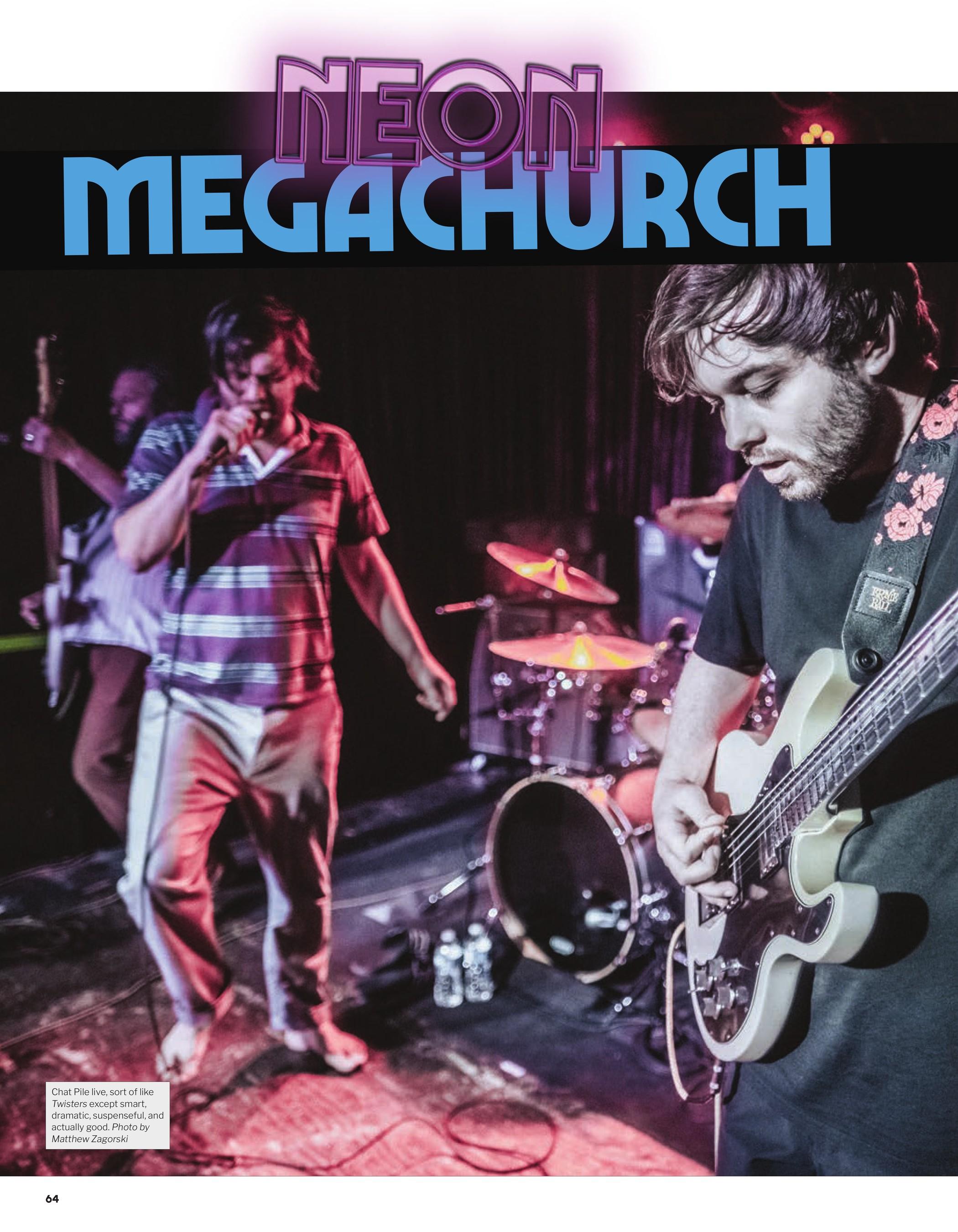 The four members of Oklahoma City’s Chat Pile truly love movies. They’re encyclopedic when it comes to silver-screen fandom, and mentioned no fewer than a dozen films during the sweltering ly hot Saturday in June we spent together in Brooklyn. They had already visited two separate art-house theaters during their brief tour stop in New York. But the group—composed of singer Raygun Busch, guitarist Luther Manhole, bassist Stin, and drummer Captain Ron—decidedly does not like Ralph Bakshi’s infamous 1992 flop Cool World.