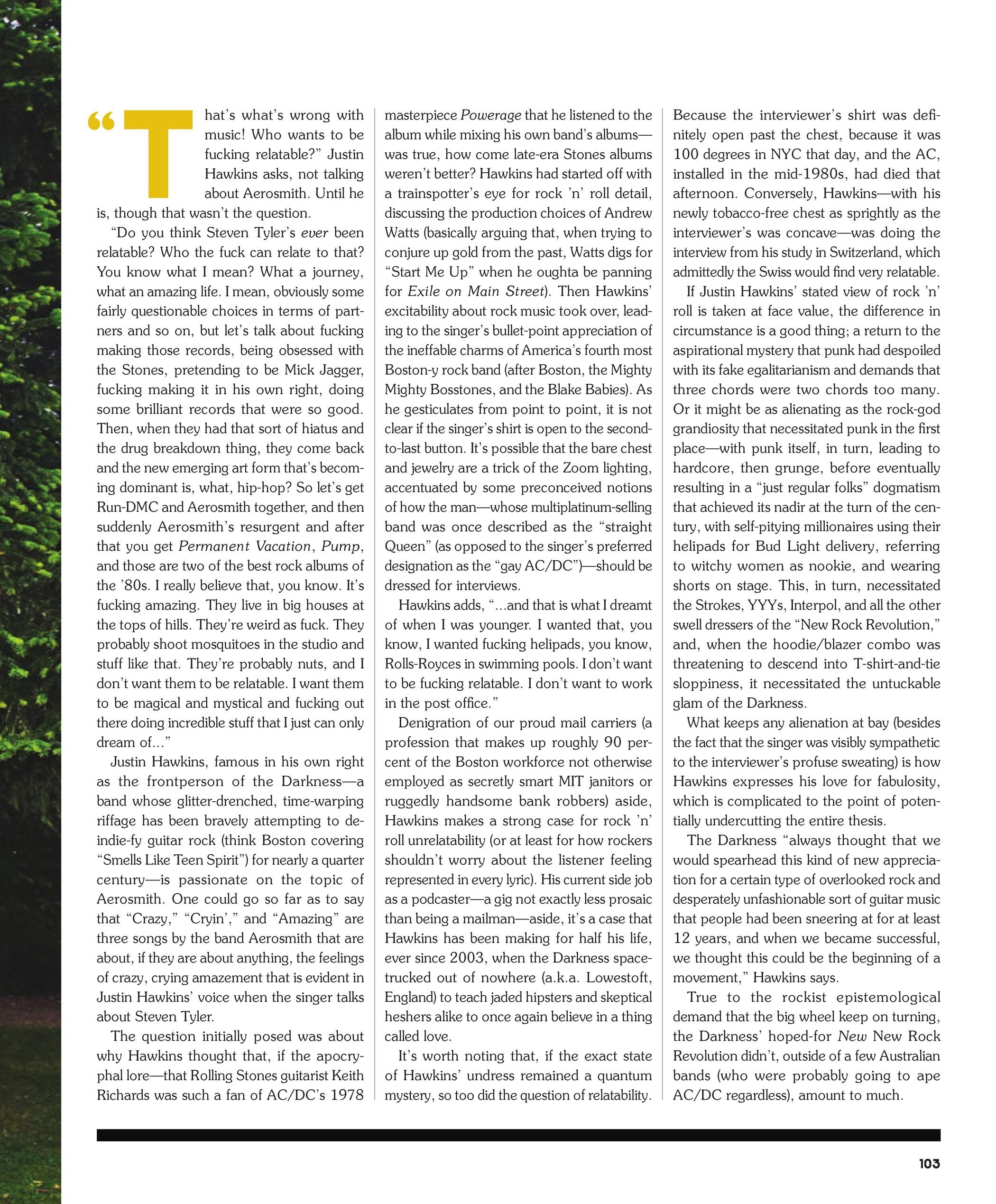 "That’s what’s wrong with music! Who wants to be fucking relatable?” Justin Hawkins asks, not talking about Aerosmith. Until he is, though that wasn’t the question.