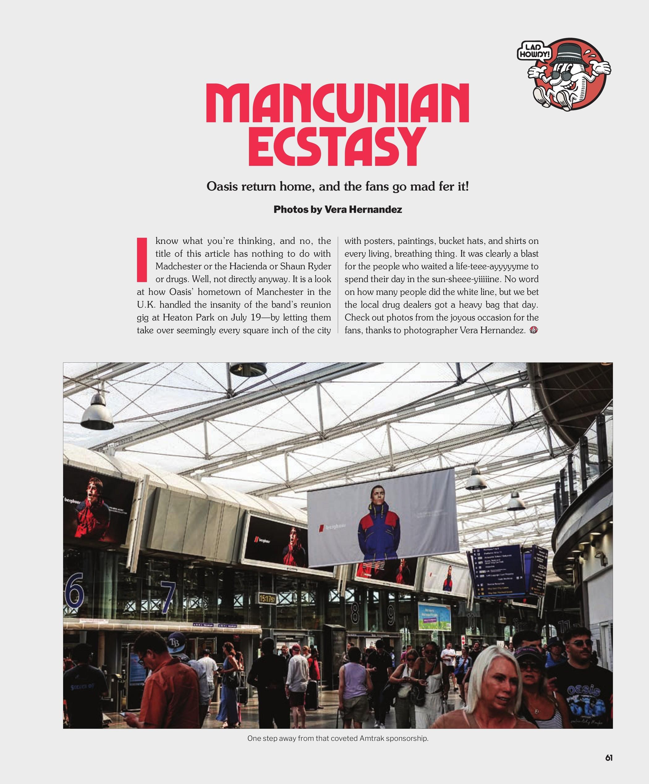 I know what you’re thinking, and no, the title of this article has nothing to do with Madchester or the Hacienda or Shaun Ryder or drugs. Well, not directly anyway. It is a look at how Oasis’ hometown of Manchester in the U.K. handled the insanity of the band’s reunion gig at Heaton Park on July 19—by letting them take over seemingly every square inch of the city with posters, paintings, bucket hats, and shirts on every living, breathing thing. It was clearly a blast for the people who waited a life-teee-ayyyyyme to spend their day in the sun-sheee-yiiiiine. No word on how many people did the white line, but we bet the local drug dealers got a heavy bag that day. Check out photos from the joyous occasion for the fans, thanks to photographer Vera Hernandez.