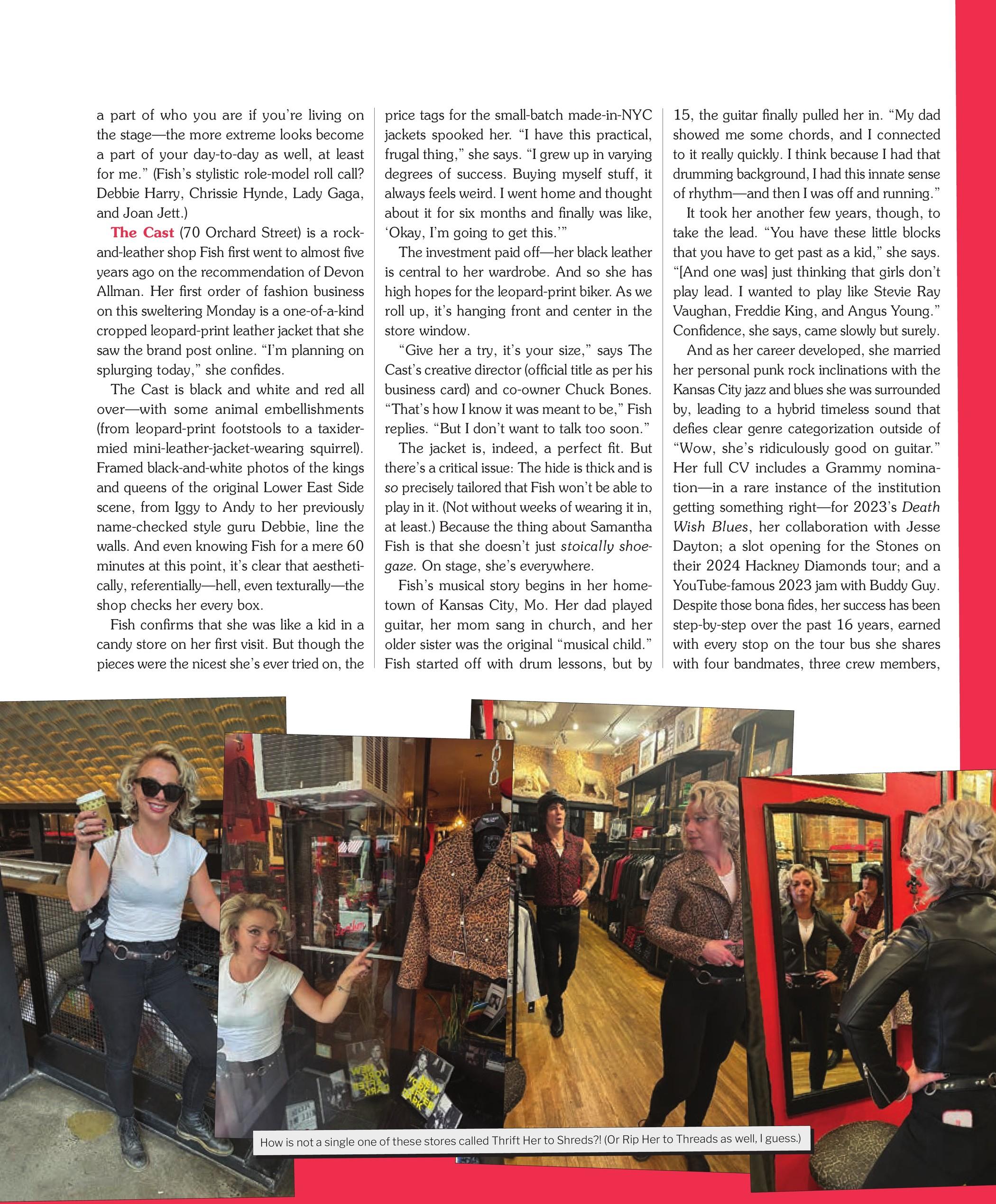 But it’s the only time for Samantha Fish, who’s been crisscrossing the globe playing near-daily sets in support of her eighth solo album, the bluesy, biting Paper Doll, which hit in April. The singer-guitarist has a tight four-hour window to indulge in a little retail therapy before sound check for her gig at the legendary Iridium jazz club. So shopping through the sweat is going to have to be the way it gets done.