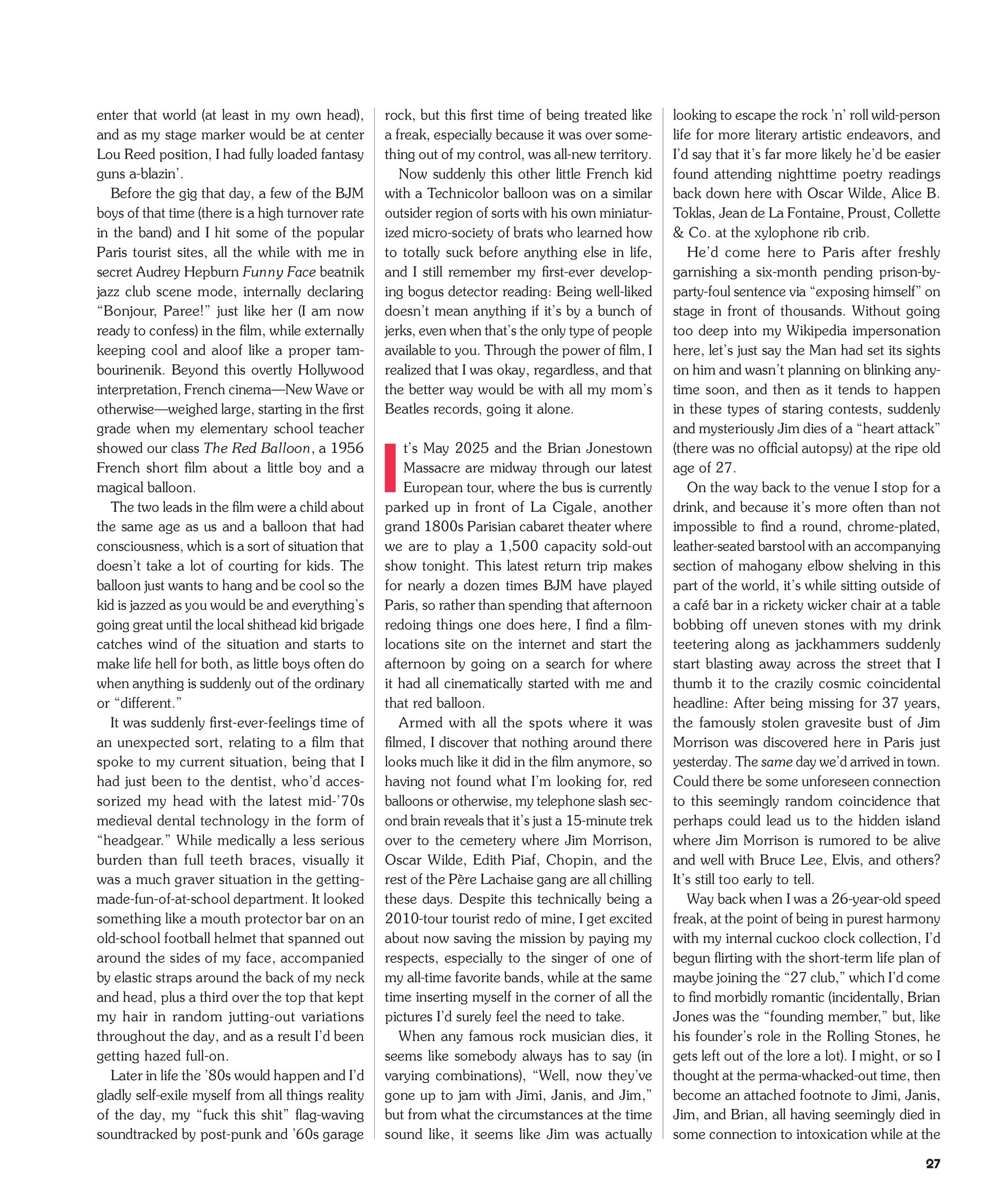 The Brian Jonestown Massacre’s first time in Paris was way back in 2008 A.D. (after Dig!) when we played at the Bataclan, a concert hall dating back to the 1800s that in 1970 had been converted over to the rock ’n’ roll persuasion (also, incidentally, the year I was born). Two years later, it became the site of the ’72 Velvet Underground reunion show one-off, when Lou Reed, Nico, and John Cale reconvened for the first and last time since the band’s dissolving.