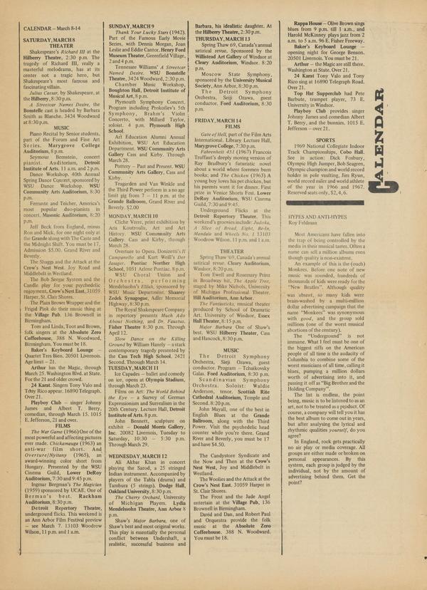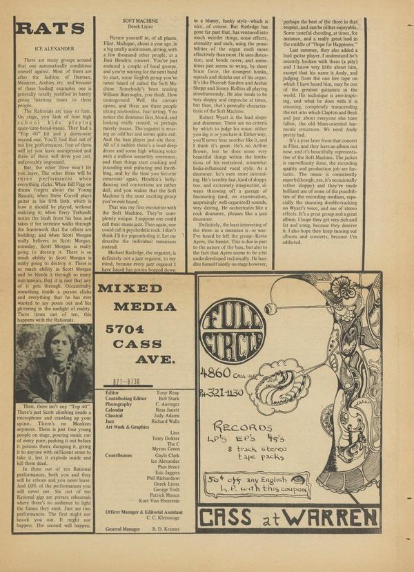 Detroit has kind of a strange thing happening in this age of supergroups and sessions. Sometimes it takes the form of an FM radio disc jockey chiding the local club owners for not backing local groups or the mentor of a certain local group accusing radio stations of not supporting local groups or in general, everyone accusing everyone else of not supporting our groups. Despite all this, I think if we look around, we will see that “It’s getting better all the time.” For one aspect, we have to look no further than Birmingham.