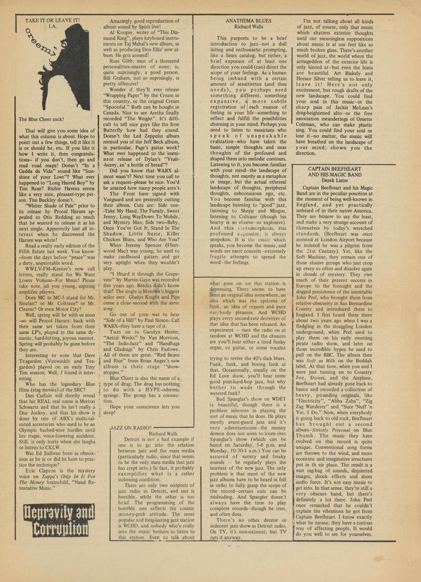 It’s getting weird kiddies! Everybody’s tight; tight like a precision machine. But who wants to hear a machine make music? It doesn’t matter what comes out of a Marshall amp; what counts is what comes forth from the human plugged, into the amp.