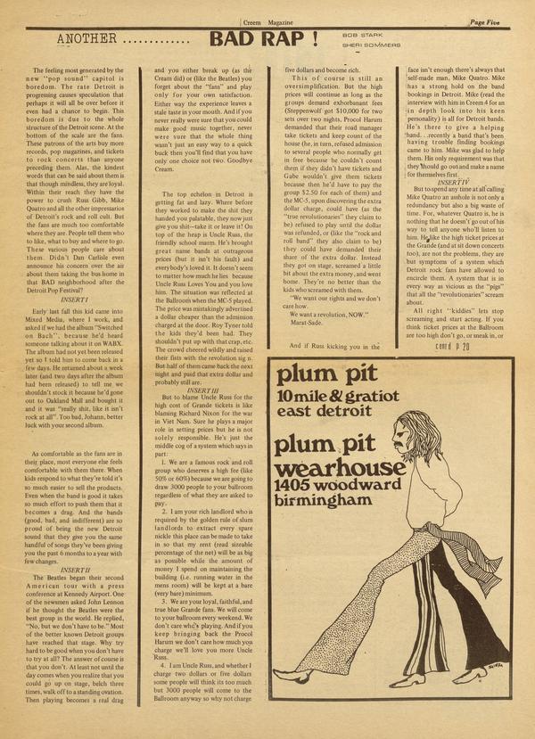 It seems that several articles in Creem No. 3 caused a hassle.