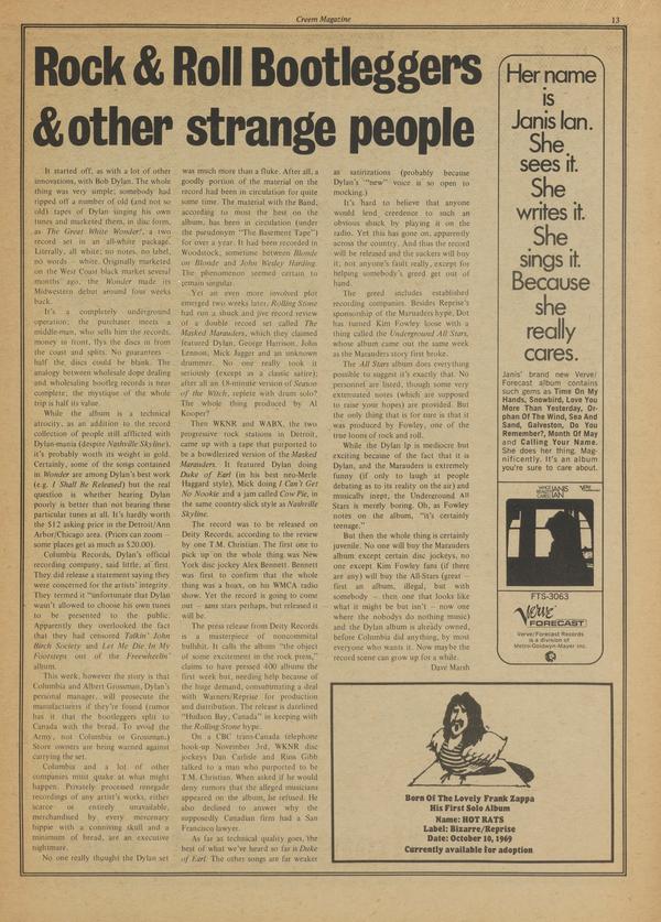 It started off, as with a lot of other innovations, with Bob Dylan. The whole thing was very simple; somebody had ripped off a number of old (and not so old) tapes of Dylan singing his own tunes and marketed them, in disc form, as The Great White Wonder!, a two record set in an all-white package.