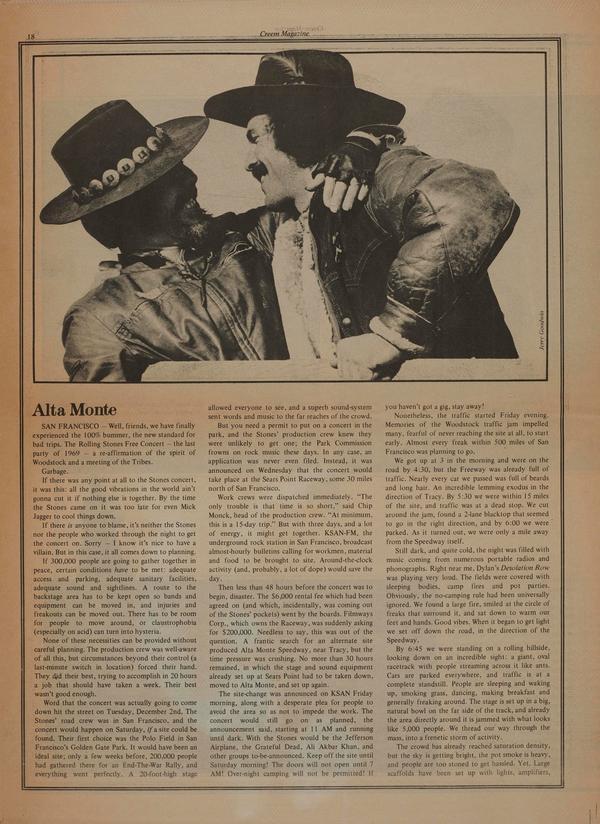 SAN FRANCISCO — Well, friends, we have finally experienced the 100% bummer, the new standard for bad trips. The Rolling Stones Free Concert — the last party of 1969 — a re-affirmation of the spirit of Woodstock and a meeting of the Tribes. Garbage.