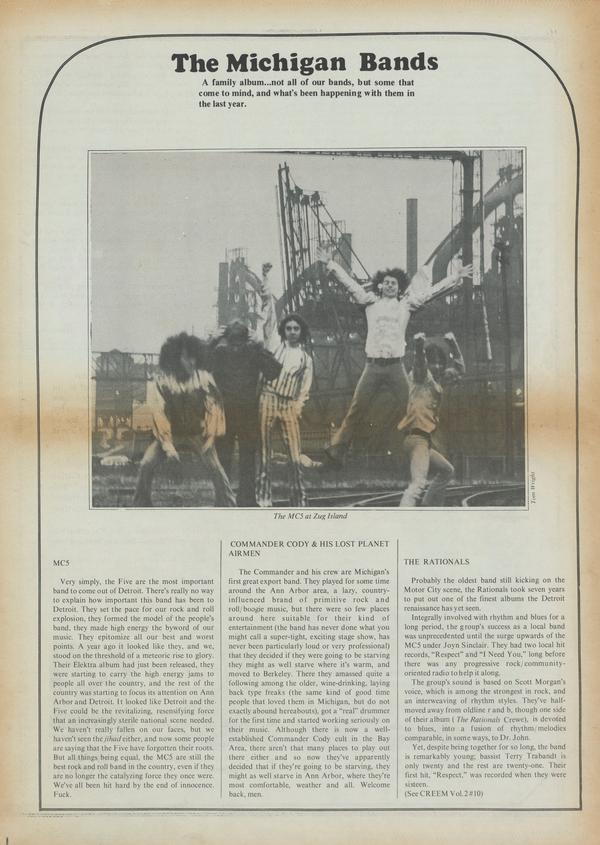 MC5 Very simply, the Five are the most important band to come out of Detroit. There’s really no way to explain how important this band has been to Detroit. They set the pace for our rock and roll explosion, they formed the model of the people’s band, they made high energy the byword of our music.
