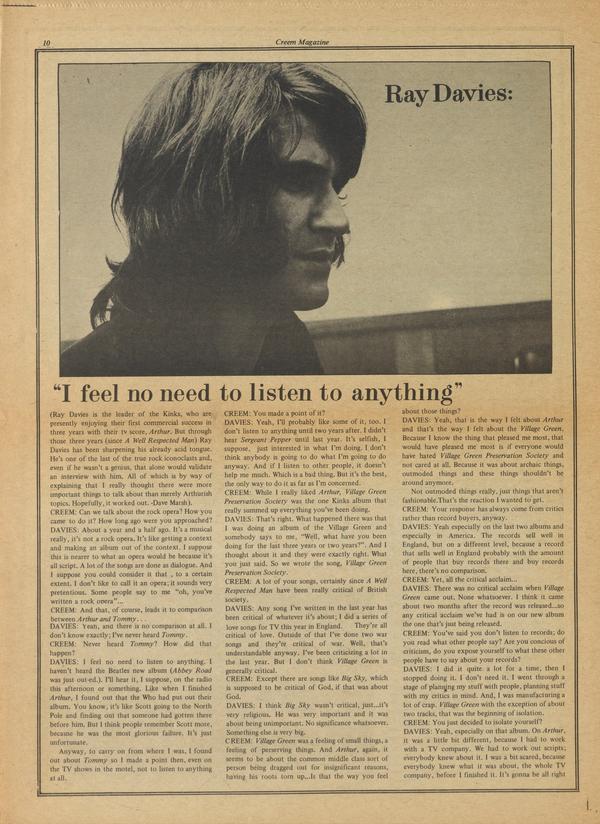 (Ray Davies is the leader of the Kinks, who are presently enjoying their first commercial success in three years with their tv score, Arthur. But through those three years (since A Well Respected Man) Ray Davies has been sharpening his already acid tongue.