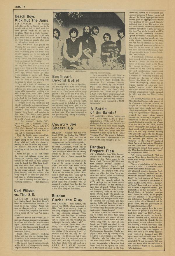 LOS ANGELES — A three judge panel is reviewing Beach Boy Carl Wilson’s claim as a conscientious objector. The panel is to rule whether Wilson will serve as a bedpan orderly or perform in U.S. installations, hospitals and prisons over a period of two years “ten days a month”.