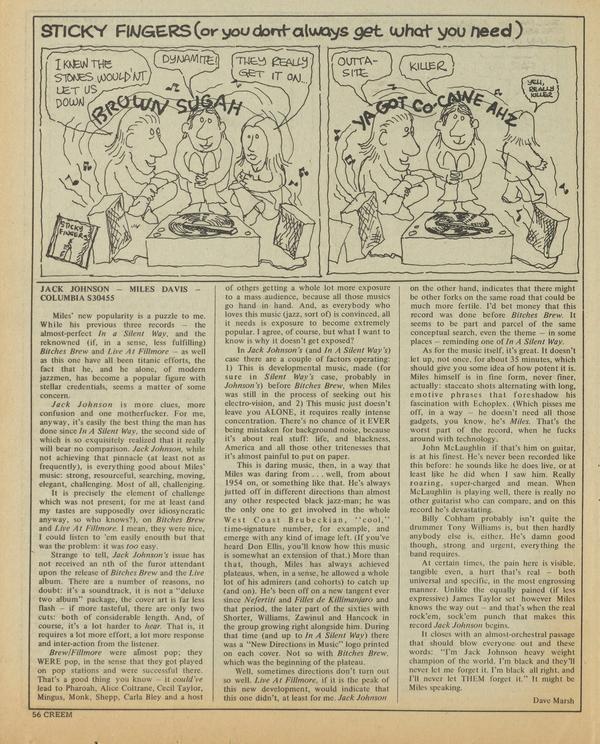 Greil Marcus’ Sticky Fingers review was to appear in this space.
