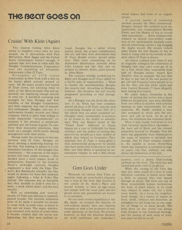 The shadow trailing Allen Klein seems to lengthen every time we turn around. As if altercations with Paul McCartney, Mick Jagger and the United States Government weren’t enough, it appears that he’s now at odds with the Douglas Communications Corporation over the handling of Alexandro Jodorowsky’s film El Topo.