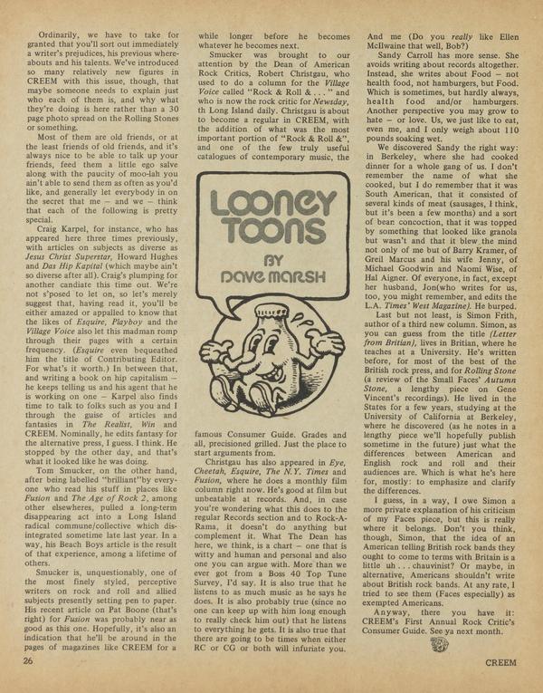 We’ve introduced so many relatively new figures in CREEM with this issue, though, that maybe someone needs to explain just who each of them is, and why what they’re doing is here rather than a 30 page photo spread on the Rolling Stones or something.