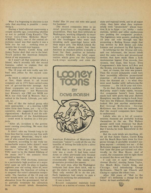 Dear CREEM: Only lousy letters get printed. This one’s lousy, too, so print it.