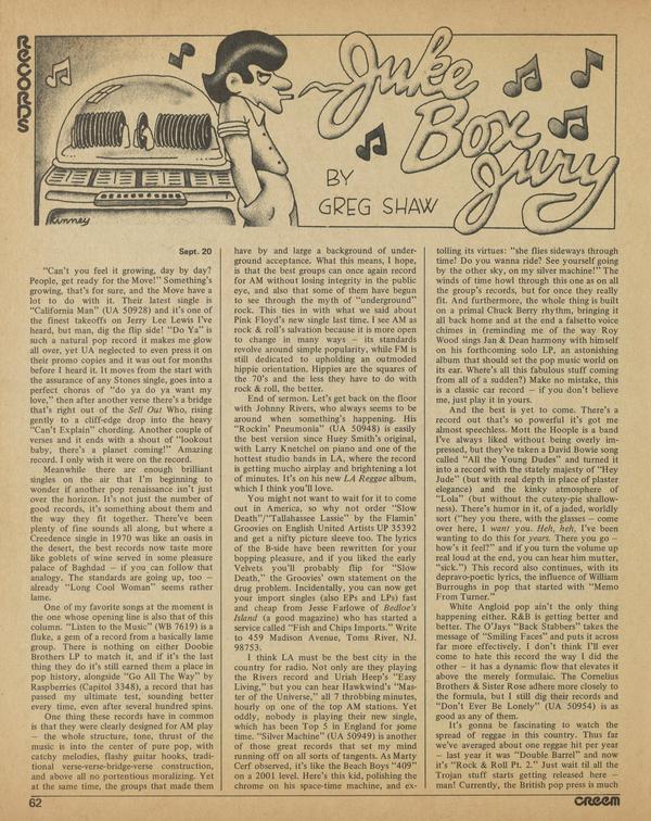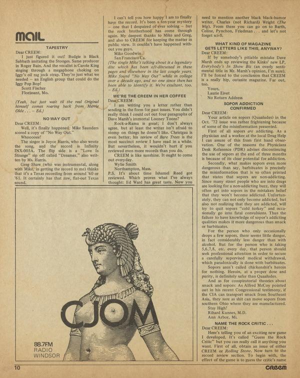 Dear CREEM: I just figured it out! Budgie is Black Sabbath imitating the Stooges.