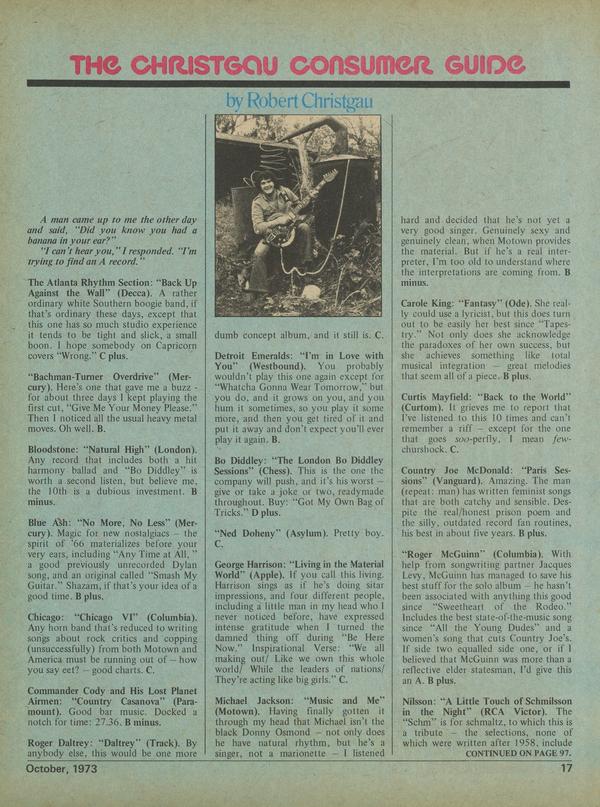 A man came up to me the other day and said, “Did you know you had a banana in your ear?" “I can't hear you,” I responded. “I’m trying to find an A record.” The Atlanta Rhythm Section: “Back Up Against the Wall” (Decca). A rather ordinary white Southern boogie band, if that’s ordinary these days, except that this one has so much studio experience it tends to be tight and slick, a small boon.