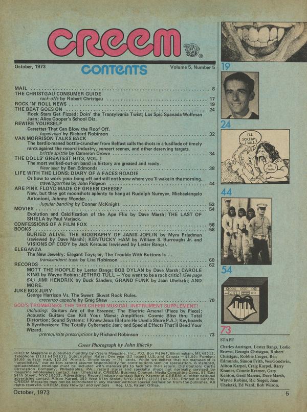 DEAR CREEM Thank you, Vince Aletti. It’s about time somebody finally put it in plain black and white. Stevie Wonder recorded the two best albums of 1972! Altogether, it was the most pleasing Top Ten list I’ve read anywhere. Cookies, and candy, and the woofer for Mr. Aletti.