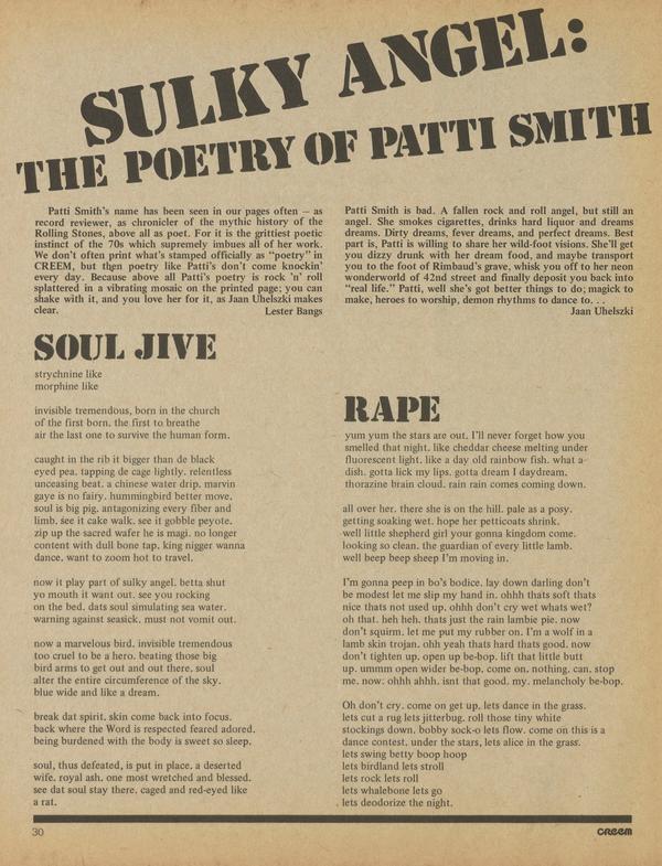 SULKY ANGLE: THE POETRY OF PATTI SMITH