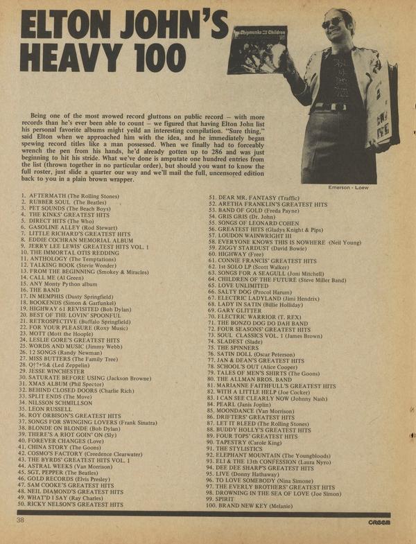 Being one of the most avowed record gluttons on public record, we figured that having Elton John list his personal favorite albums might yield an interesting compilation.