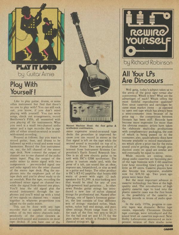 Like to play guitar, drums, or some other instrument but find that there’s no orte to play with? You can still rock out, you know, if you don’t mind playing with yourself. You can write songs, check out arrangements, record Beethoven’s Fifth, all unassisted with you playing all the instruments.