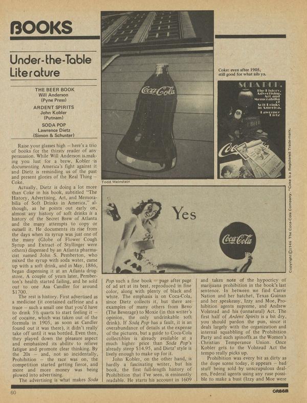 Raise your glasses high — here’s a trio of books for the thirsty reader of any persuasion. While Will Anderson making you lust for a brew, Kobler is documenting America’s fight against it and Dietz is reminding us of the past and present glories of the Real Thing — Coke.