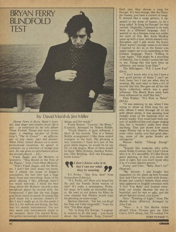 BRYAN FERRY BLINDFOLD TEST