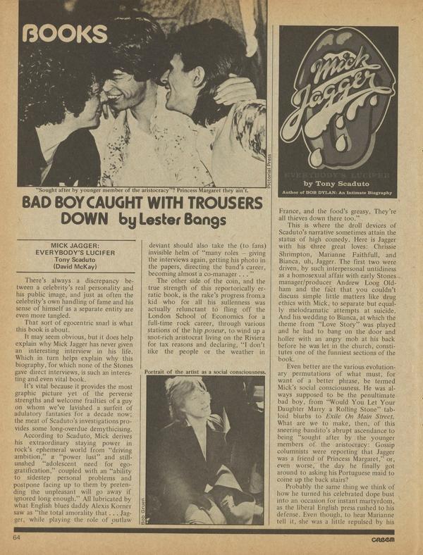 This is the month of the Mick movie rumor. All close but no ci-gar: Jagger almost signed to do Caves of the Vatican with Warhol and Morrissey, while Landers and Roberts have literally pinned him to star in their screen version of Deadly Edge. Liszt with a twist: Composer Franz Liszt could take on a new look in the movie planned Ken Russell.