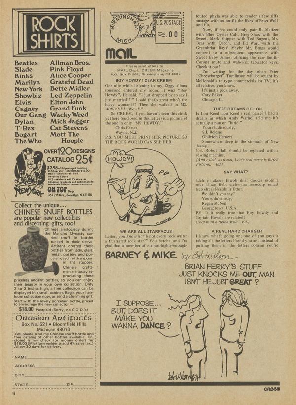 BOY HOWDY? DEAR CREEM One nite while listening to my Ziggy album someone entered my room, it wuz “Boy Howdy”. He said, “I just dropped by to say I just married!!!” I said that’s great who’s the lucky woman??? Then she walked in MS. HOWDY!!! “Wow!!”