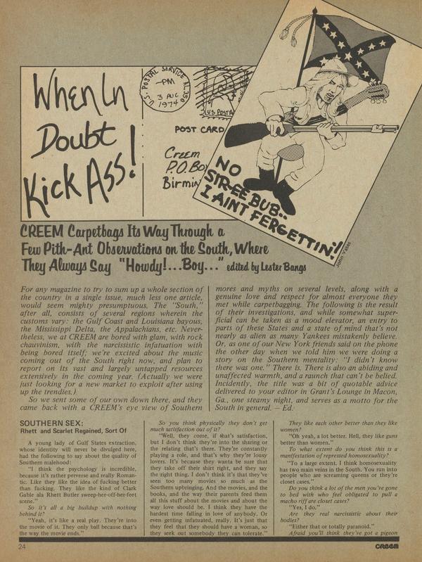 CREEM carpetbags Its Way Through a Few Pith-Ant Observations on the South, Where They Always Say "Howdy...Boy..."