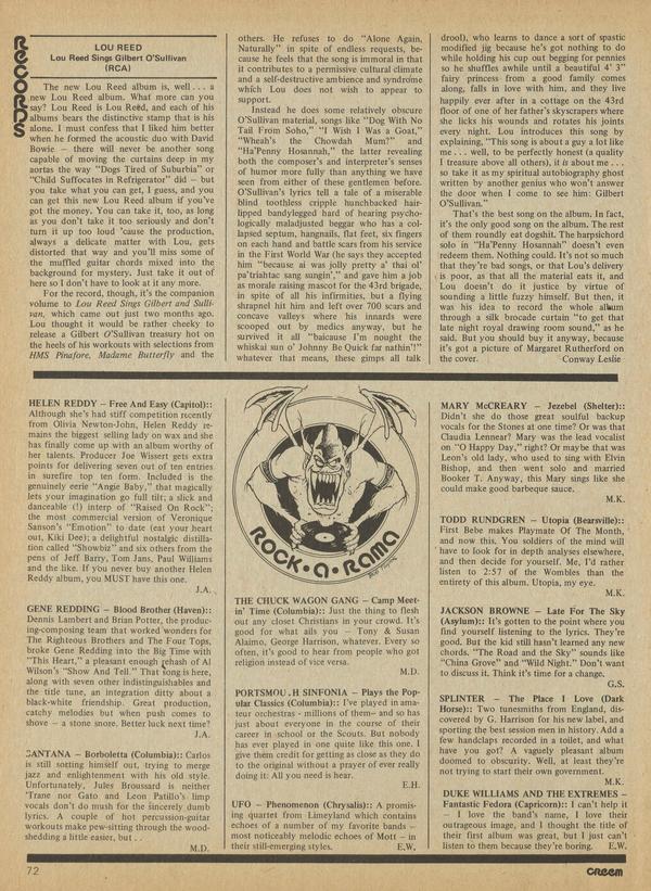 LYRICS MADE LOUCID I have two questions for you concerning Lou Reed. First, on the song “Kill Your Sons,” he says “CREEM won’t treat me very good,” but what does he say on the next line? I played it over a hundred times but can’t figure it out. Second, have you ever seen Lou with a smile on his face?