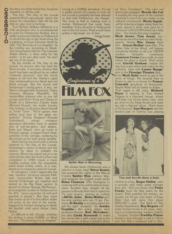 Hollywood has always managed to remain beyond scrutiny. Movies may come and go in a fever of unconverted nitrate; actors and actresses can succeed in wiping themselves out at a tender age, but there will always remain HOLLYWOOD—an unsympathetic, unmoving monolith which attracts people like moths to light, people without identity and purpose who are then promised a lot of things they're never going to get.