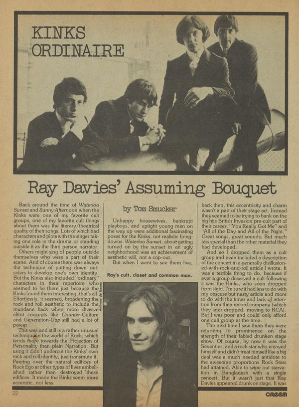 Back around the time of Waterloo Sunset and Sunny Afternoon when the Kinks were one of my favorite cult groups, one of my favorite cult things about them was the literary/theatrical quality of their songs.
