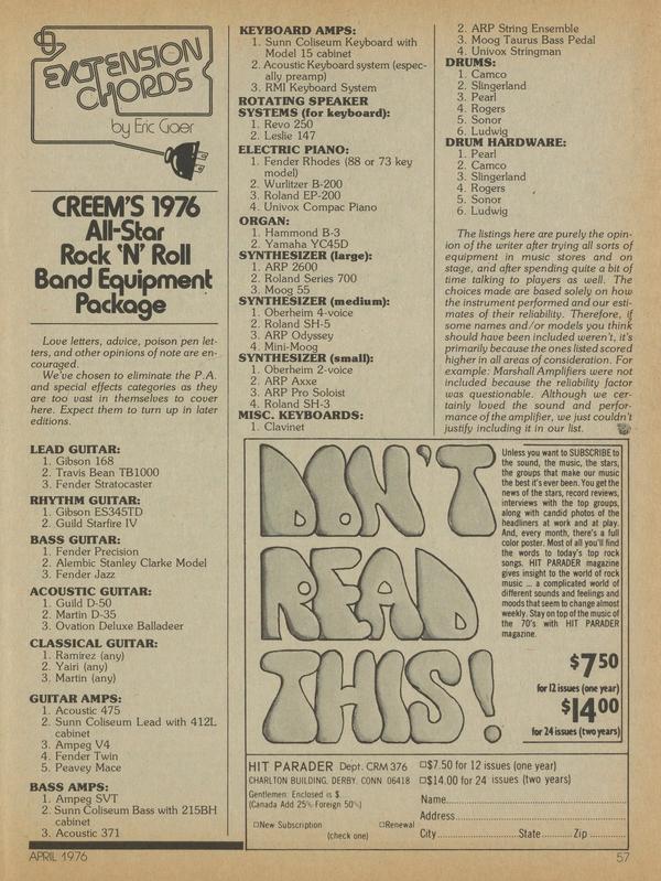CREEM’S 1976 All-Star Rock ‘N’ Roll Band Equipment Package