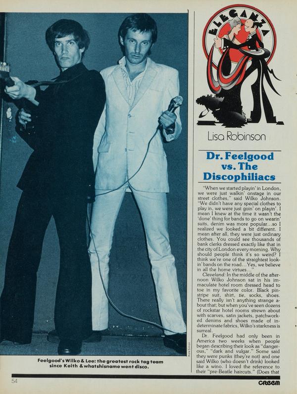 When we started playin" in London, we were just walkin" onstage in our street clothes," said Wilko Johnson.