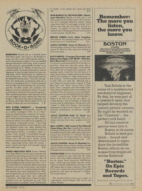 RAMONES (Sire)::I was at a baseball game with Allen Lanier—the Twins vs. the Rangers or some such shit, it was in Minneapolis anyway— and he kept trying to explain to me why baseball was good because it was boring, a line of reasoning also pursued unsuccessfully (at least to my understanding) by R. Meltzer in barroom conversations past.
