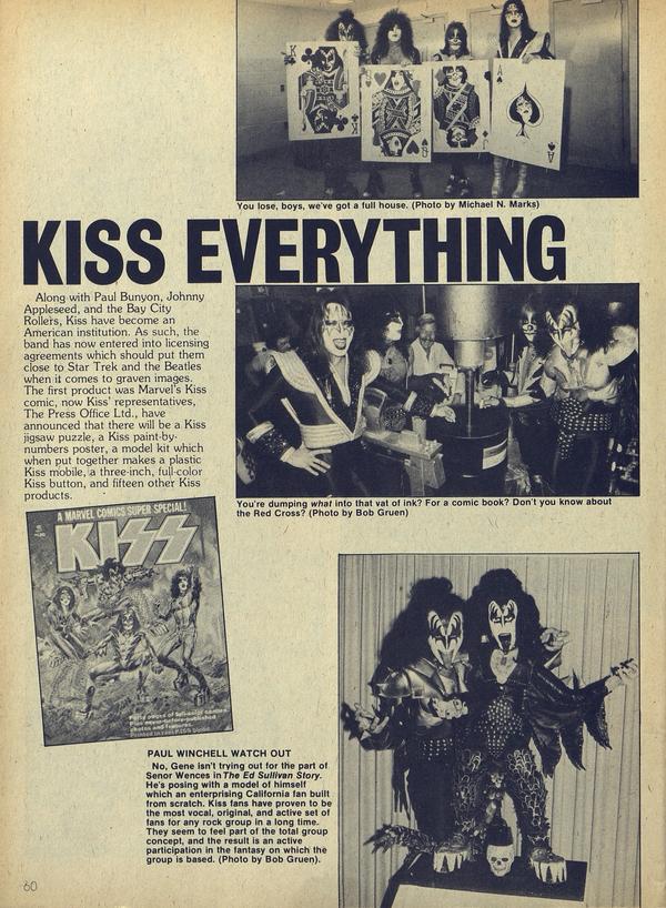 Along with Paul Bunyon, Johnny Appleseed, and the Bay City Rollers, Kiss have become an American institution. As such, the band has now entered into licensing agreements which should put them close to Star Trek and the Beatles when it comes to graven images.