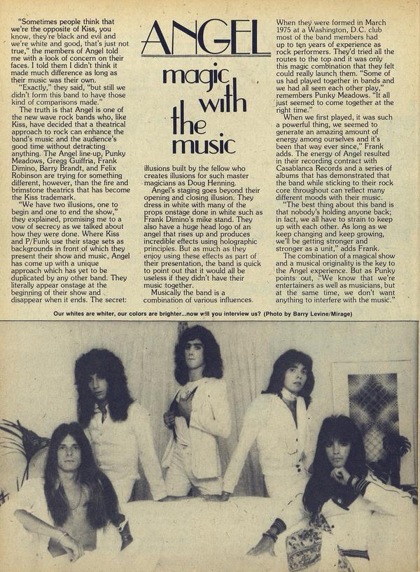 “Sometimes people think that we’re the opposite of Kiss, you know, they’re black and evil and we’re white and good, that’s just not true,” the members of Angel told me with a look of concern on their faces. I told them I didn’t think it made much difference as long as their music was their own.